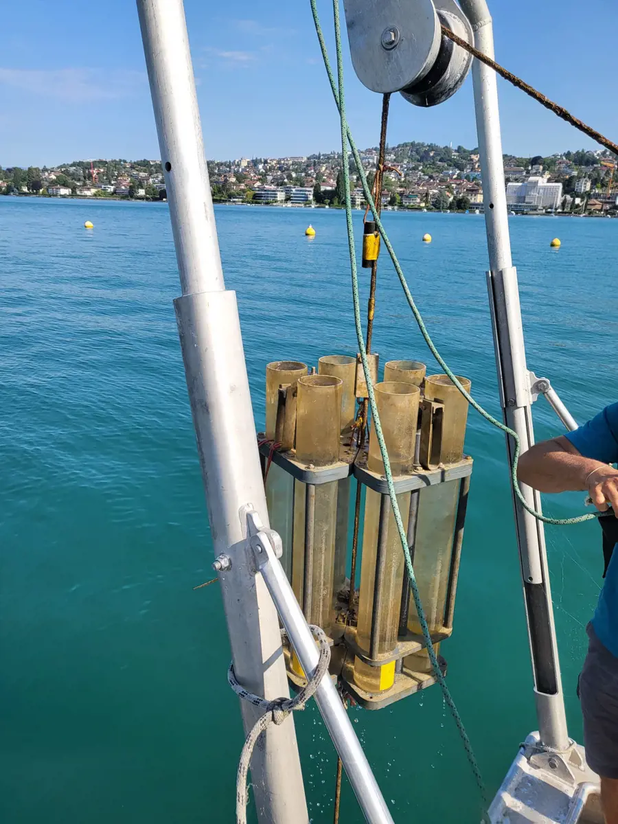 Schwebstoffe dienen für viele Organismen als Nahrungsquelle, zugleich können sie Schadstoffe enthalten. Ihre chemische Zusammensetzung und mögliche Ökotoxizität geben daher wichtige Hinweise auf den Gesundheitszustand eines Sees. Das Oekotoxzentrum hat die Qualität der Schwebstoffe im Genfersee von März 23 bis April 24 charakterisiert. «Dank der Versuchsplattform LéXPLORE konnten wir in verschiedenen Tiefen Schwebstofffallen installieren und zur Probenahme verwenden», erklärt Projektleiterin Rébecca Beauvais. «Anschliessend haben wir die Partikel chemisch analysiert und ihre Wirkung auf das Wachstum und Überleben von Muschelkrebsen beobachtet.»